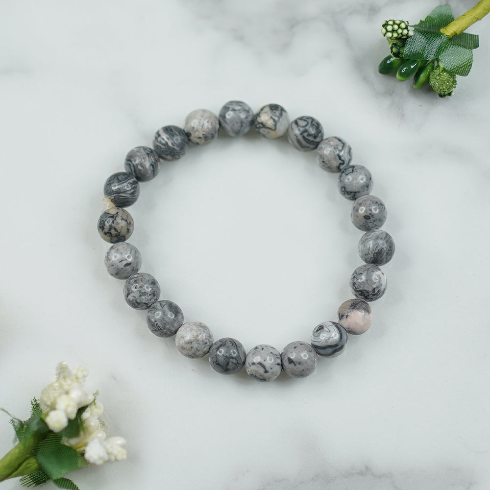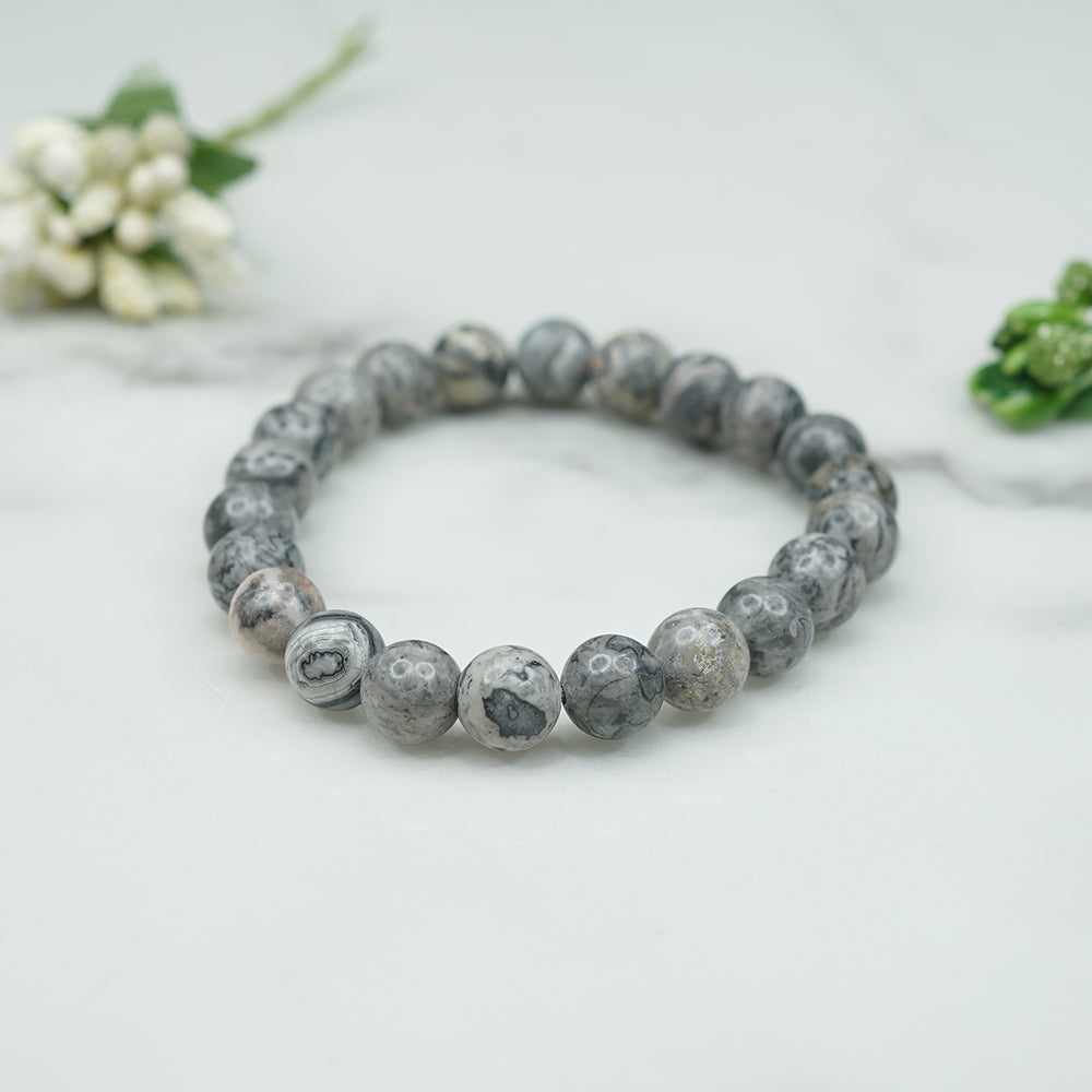 Grey Jasper emerges as a reliable source of stability and support. With its grounding and earthy qualities, it serves as a remedy for emotional turmoil, stress, and negativity. This bracelet, akin to a heavenly presence, brings forth a profound sense of peace and tranquillity, aligning with the chakras from the base to the crown.