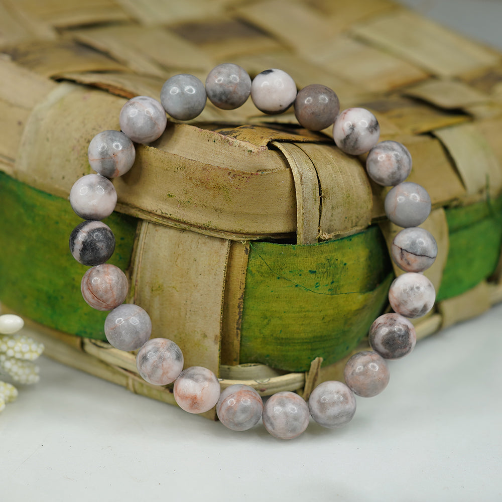The Pink Zebra Jasper Bracelet is a versatile and everyday remedy, working to nurture relationships and attract the love you desire. It imparts wisdom for effective life management and helps curb procrastination. Bridging the realms of success and grounding, it aids in spiritual growth while providing healing for psychological woes, fears, and traumas.