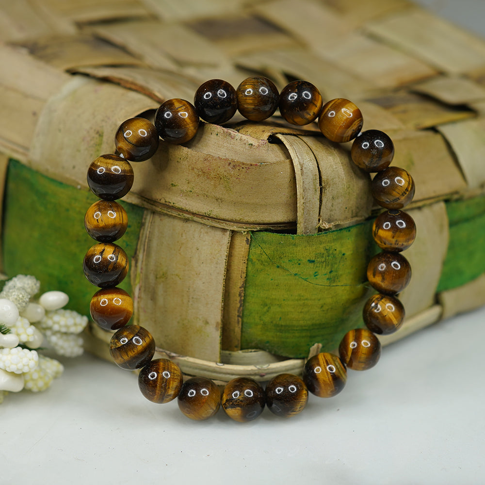 The Tiger Eye Stone, which mirrors the captivating appearance of a tiger's eye, not only possesses visual charm but also harbours astonishing properties. This bracelet's aesthetic appeal conceals an array of remarkable advantages, including protection against negative influences, financial improvement, the attraction of good luck, heightened self-assurance, increased creativity, and a proactive attitude. It harmonises with the planet Ketu and promotes spiritual achievement, courage, mental clarity, and a positive mindset.