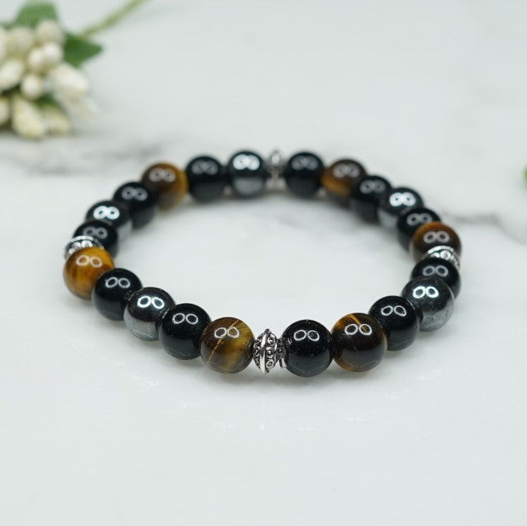Introducing our formidable "Triple Protection Bracelet" – a unique combination of Yellow Tiger Eye, Black Onyx, and Hematite, meticulously crafted to serve as your steadfast guardian, creating an impenetrable shield against negative energy, providing inner strength, and promoting a sense of security and serenity.